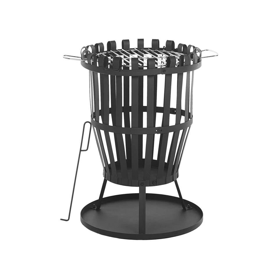 Ronde, zwarte firepit van staal. Deze zeer mooie buitenvuurplaats zorgt voor warmte in jouw tuin of op jouw terras. Daarnaast geeft de firepit je de mogelijkheid om gezellig te barbecuen. De stalen opengewerkte structuur van de vuurkorf is decoratief en praktisch tegelijk en verwarmt effectief je tuin of terras. Een handige bodembak zorgt ervoor dat je altijd een schone terrasvloer hebt.
