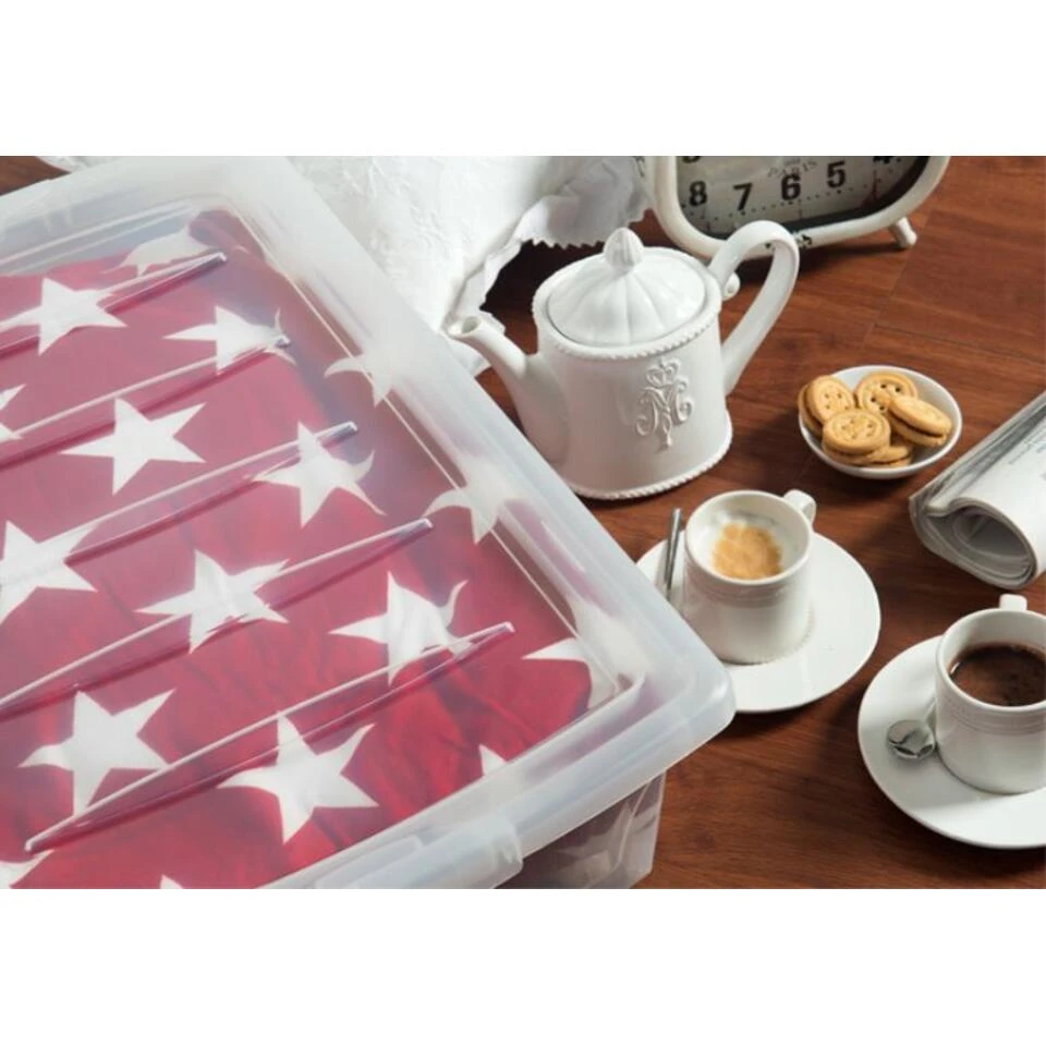De Spinning Box XL is een ruime, transparante opbergbox met een inhoud van 56 liter. Door de platte vormgeving is de opberger zeer geschikt om onder het bed te schuiven. Zo ruim je je spullen netjes op uit het zicht. De opbergbox heeft een scharnierdeksel waarmee je beide kanten van de deksel los van elkaar omhoog kunt klappen.