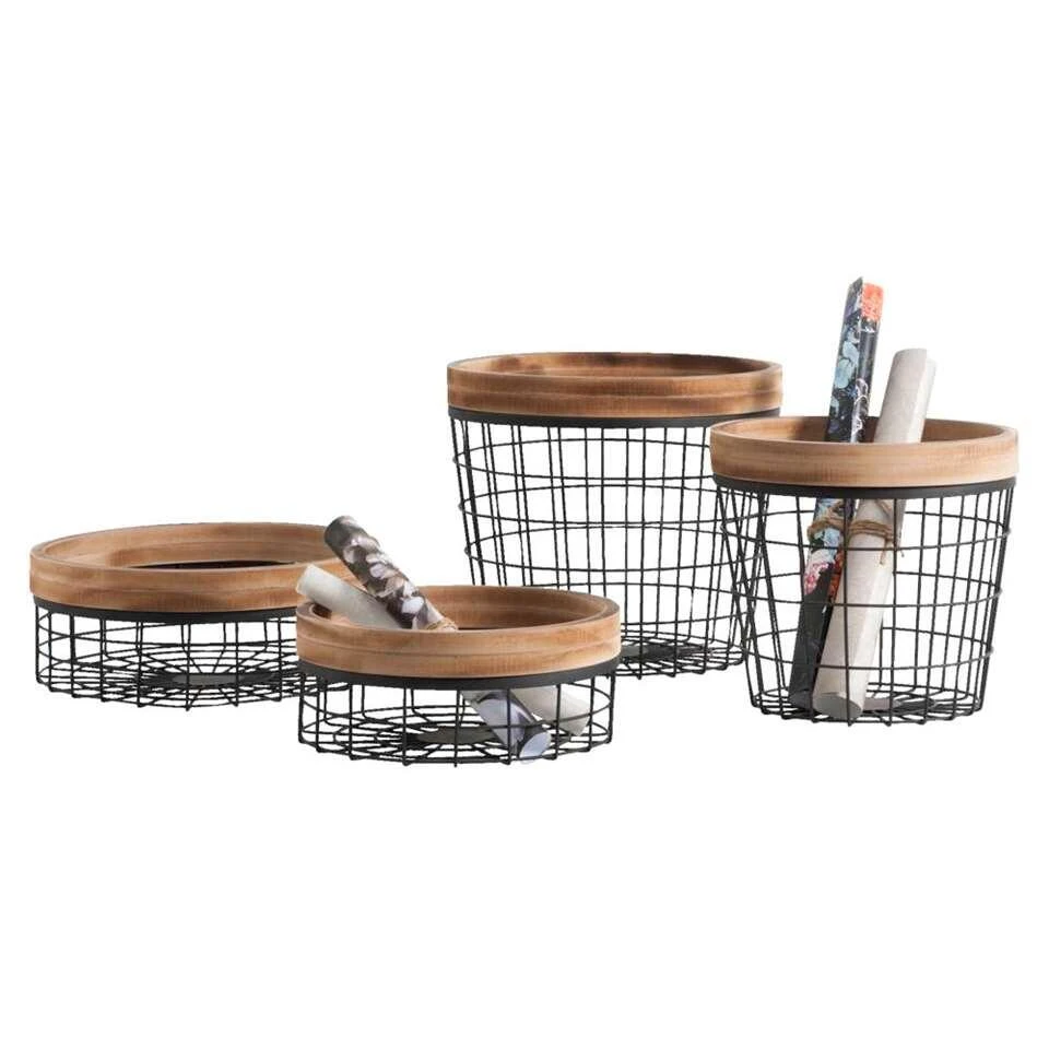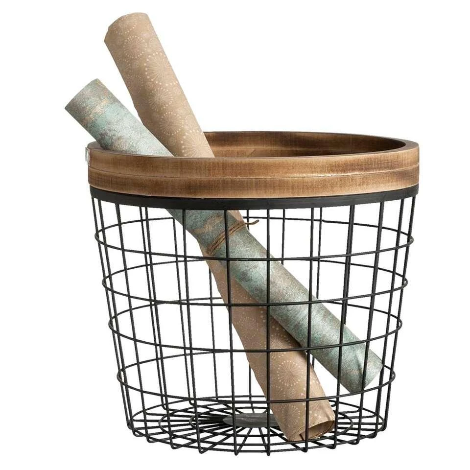 Mand Valencia is een ronde draadmand van metaal met een afmeting van 28,5xØ32,5 cm. De bovenrand is gemaakt van MDF. Manden in het interieur worden steeds populairder en zie je terugkomen in vele woonthema’s. Deze metalen mand kun je overal neerzetten en voor vele doeleinden gebruiken. Van tijdschriften tot gastendoekjes en van toiletrollen tot badkameraccessoires.