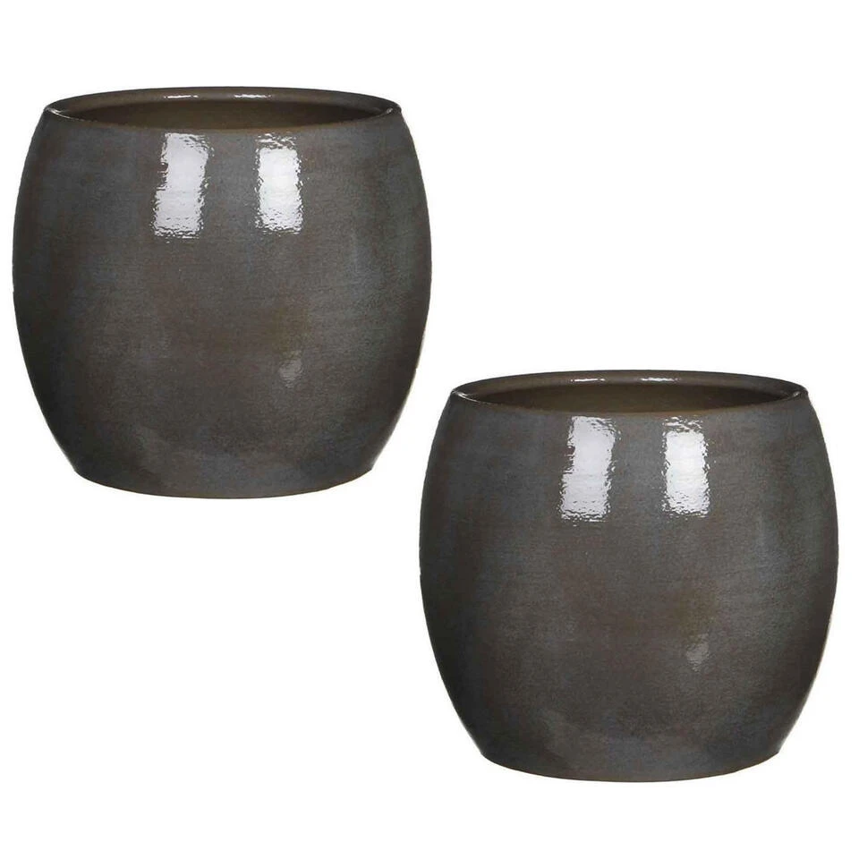 Mica Decorations Bloempot – Donkergrijs – Keramiek – 24 X 22 Cm