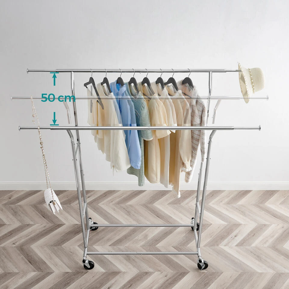 MAKKELIJK TE MONTEREN: Dankzij het overzichtelijke aantal losse onderdelen en de eenvoudig te begrijpen instructies is dit kledingrek eenvoudig te monteren. In slechts enkele stappen en klikken heeft u een stabiele metaal verchroomd kledingrek