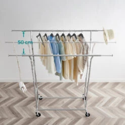 ACAZA Mobiel Kledingrek – Dubbelvoudig – 2 Rails – Zilvergrijs