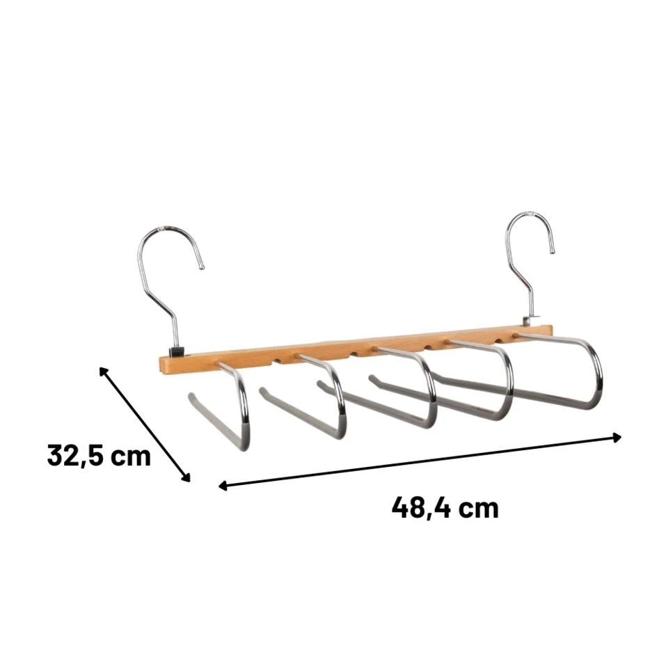 De Orange85 broekhangers zorgen voor een opgeruimde kast. De broekhangers heeft plaats voor 5 broeken. Doordat de hanger verticaal is, is het makkelijk in je kast te hangen. Ook bespaart het hierdoor ruimte. De hanger is gemaakt van bamboe en metaal.