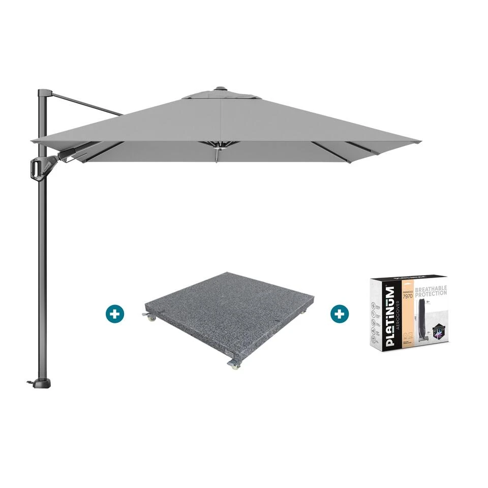 Platinum Voyager T2 zweefparasol 2,7×2,7 m Light grey met voet en hoes