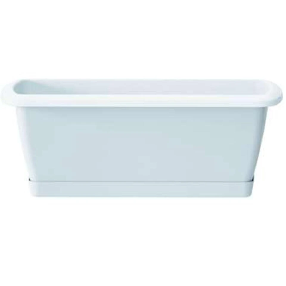 1x Respana plantenbak/bloembak wit 49 cm inclusief onderzetter van kunststof. Kras en stootvaste bloembak/plantenbak, voorzien van een onderzetter. De bloembakken/plantenbakken zijn geschikt voor binnen en buiten gebruik. Serie: Respana set. Formaat: lengte ca 49 cm. Breedte: ca 18,4 cm. Hoogte: ca 15 cm. Materiaal: kunststof.