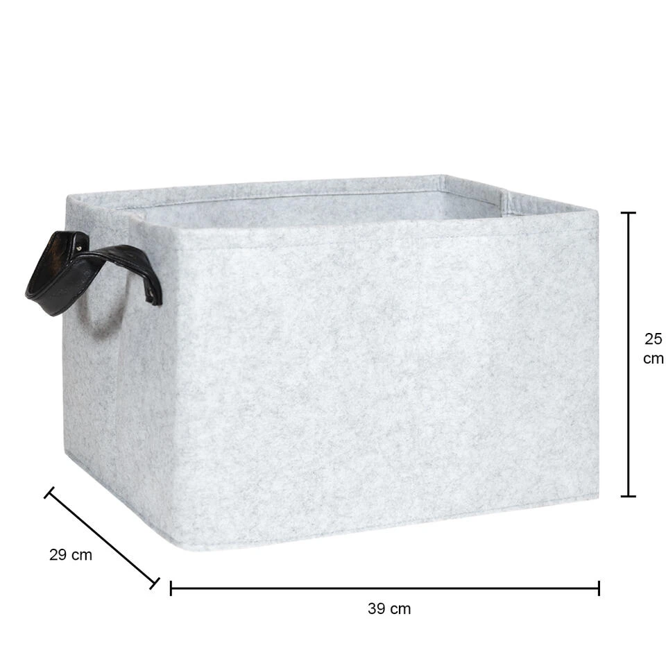 De vilten opbergmanden zijn overal in huis goed te gebruiken. Door hun mooie formaat passen er veel spullen in de manden en met de handvaten verplaats je de opbergbakken indien nodig. Het vilten materiaal geeft de organizers bovendien een stijlvol uiterlijk. Zet deze bakken bijvoorbeeld in een open kast voor een mooi en opgeruimd effect.